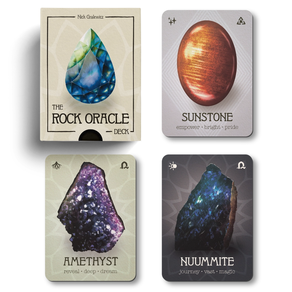 This deck is perfect for rock collectors, oracle deck enthusiasts, and tabletop gamers alike.